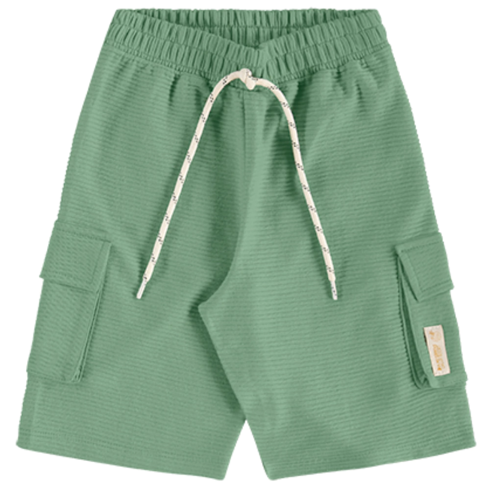 A bermuda é confeccionada em tecido 100% algodão, leve, macio e com textura agradável ao toque. A modelagem conta com bolsos cargo funcionais, cós com elástico confortável e cordão ajustável, deixando o visual ainda mais despojado.