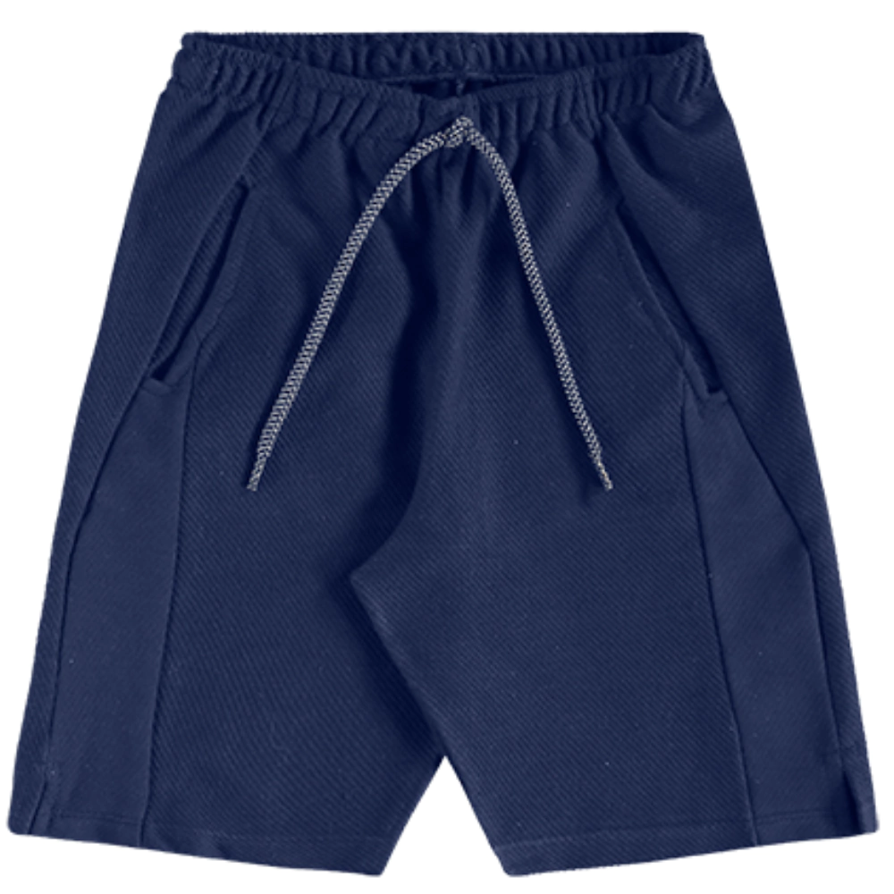 A bermuda é feita em tecido 100% algodão, macio ao toque e com caimento leve. Possui cós elástico com cordão ajustável e bolsos funcionais, proporcionando liberdade para brincar com conforto.