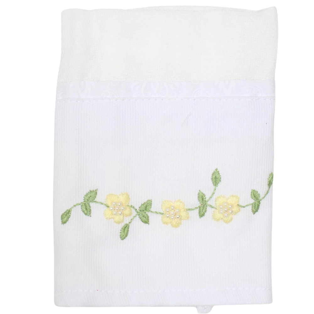 Fraldinha de boca com aplique de tecido tricoline e fustão com bordados e sapatinho de tricô com aplique bordado.. Produto feito artesanalmente.