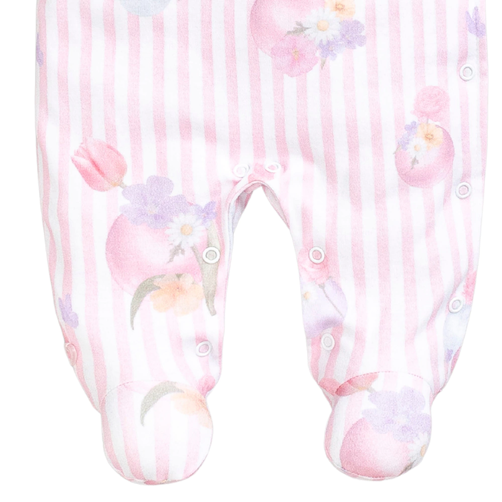 Macacão confeccionado em suedine 100% algodão, com toque macio e respirável para o conforto do bebê. Possui gola e punhos com acabamento em crochê artesanal e abertura lateral com botões de pressão, que facilita as trocas e garante praticidade no dia a dia.